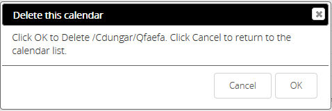 Select Delete from the Calendar Action menu to delete the currently selected Calendar. Click OK to delete.
