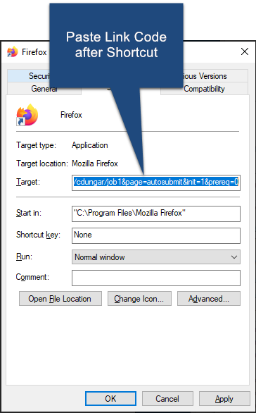 3.Paste the link code in the target field after the program