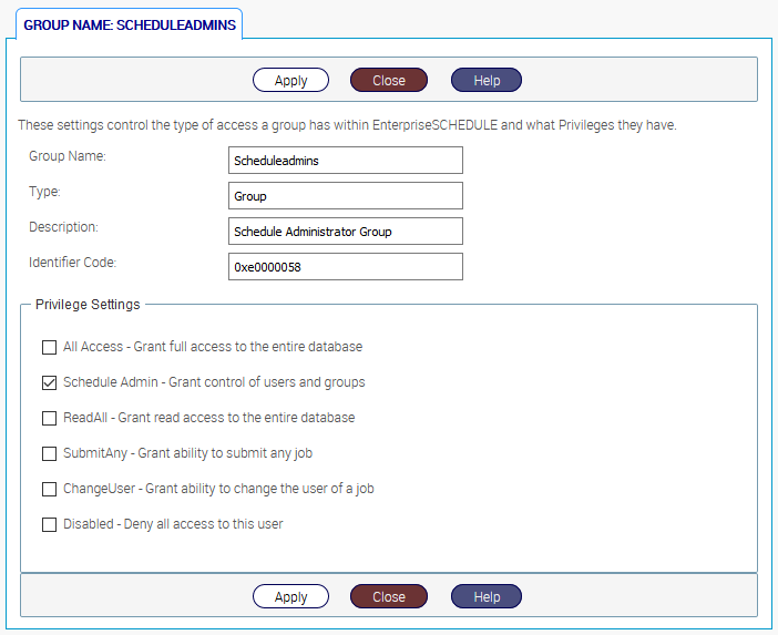 Group settings allow the Administrator to assign access rights to a group of users. Once the group is created, users may be added to the group and will take on all privileges of that group. The group settings take precedence over user settings. See Group and user privileges for the privileges that may be granted.