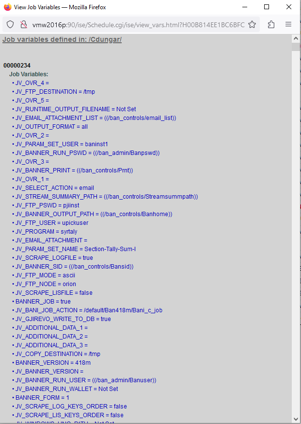 To view all Job Variables in a folder, right click on a folder and select View Job Variables. Job Variables are variables that are tied to a job and are defined within the job. The list of Job Variables for all jobs in the directory will be displayed.