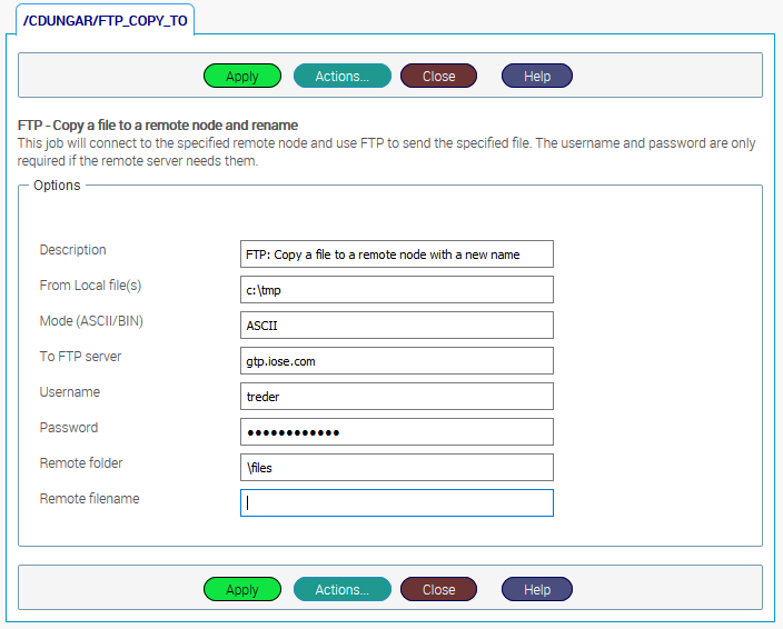 An Options Page can be created to give immediate access to Custom parameters when a user open the Properties of a job. The Options page can be customized to create a job that performs a specific function. Additionally, the user can customize the following aspects of the Job Property dialog: