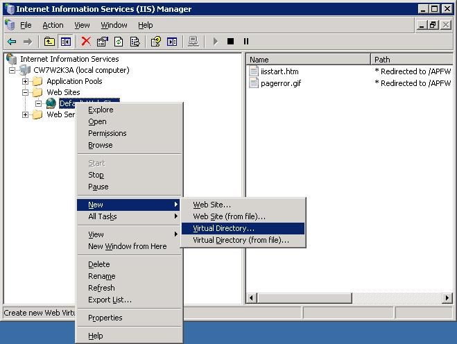 c)Select New > Virtual Directory...