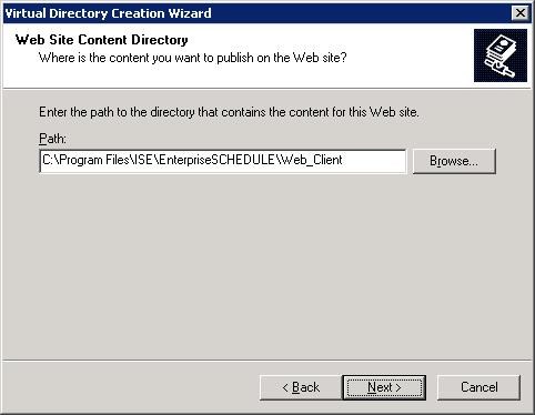 1)Create  Virtual directory ise (and later enterpriseschedule)  in location