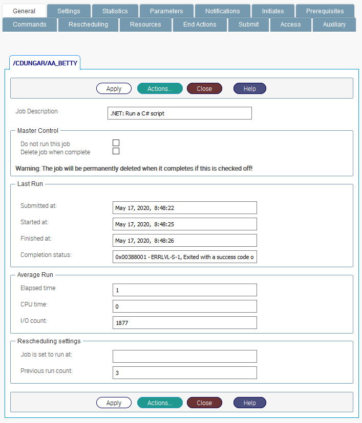 Select Properties to View the Job Properties for the currently selected Job. For Details of the Properties see the Property Page Section of this User Guide.